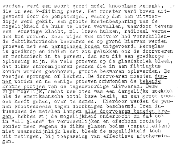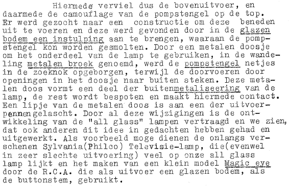 I have translated the part that deals with the development of the all-glass valve literally as possible. The original in Dutch contains some very twisted sentences. This is reflected in the translation. At a few points I have added comments in [].