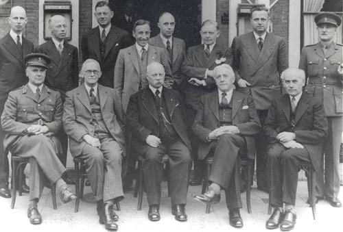 Back row, left to right: Van Kleffens, Van Beel, Tromp, De Quay, Huysmans, De Booy, Gispen + ?