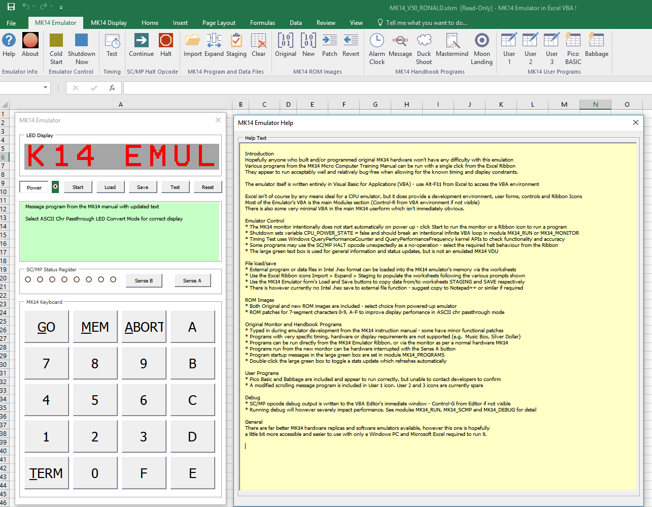 Impression of Jim’s MK14 emulator in Excel (download here)