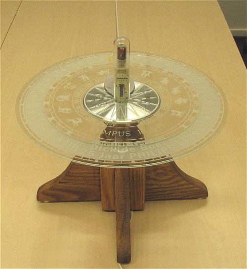 Figure 39 The “Tube-in-Tube” clock as part of the 25 year jubilee present for Dick de Boer. The text on the sundial reads: “Tempus fugit” (time flees) Dick de Boer, 25 years Philips (Research).