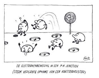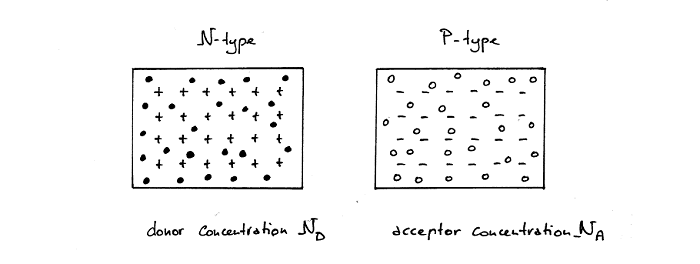 lternatively, the silicon can be doped “p-type”, by replacing the silicon atoms with a “dopant” like boron, that has only three electons in its outer shell. This open place can be filled by an electron from one of the neighboring silicon atoms, thereby shifting the open place from the boron atom to the silicon atom. When the dopant atom has taken up an electron it becomes negatively charged. This is represented by a “-” in the figure. When an electric field is applied to a piece of p-type silicon, electrons will again move in the direction opposite to the electric field, using the empty space on their way. The empty space, more commonly referred to as “a hole”, however, appears to be moving in the opposite direction, that is in the direction of the field. William Shockley once compared p-type silicon with a car parking with only one empty place left. The only way cars can move on this car parking, is by occupying the empty place. Viewed from high above however, the empty space seems to be moving in a direction opposite to the cars. It has become common practice to consider a hole as the positively charged equivalent of an electron.
