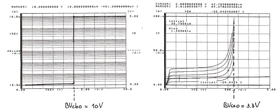 Figure 16 BVcbo (left) and BVceo (right) of a high frequency transistor.