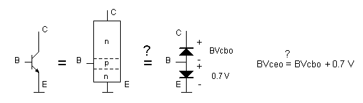 The two junctions in the transistor introduce a third possibility for a breakdown, namely between collector and emitter. It is this breakdown that, when the transistor is used as a switch or amplifier, determines the maximum supply voltage. So what determines the collector-emitter breakdown or BVceo?
