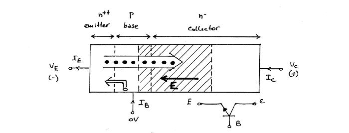 Figure 13 Current amplification in an npn transistor under normal operating conditions.