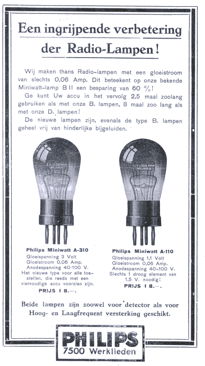 Early advert for Philips radio tubes from “Radio Nieuws” 1924.