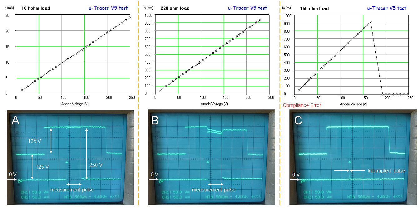 A test bench was built using as much as possible of the uTracer3 hard-and software combined with a single new high-voltage supply. A standard uTracer3 PCB was equipped with the processor, positive and negative power supplies and a single PGA113/OPA277 section. The screen supply section was not used, and the I/O’s which became available from that section were used as the additional control signals needed for the new HV supply.