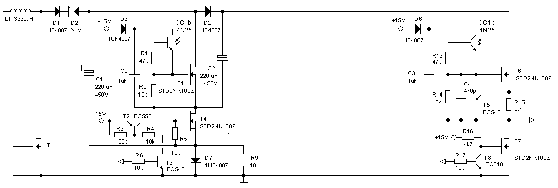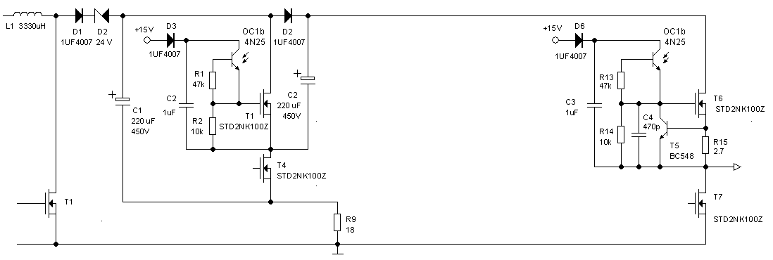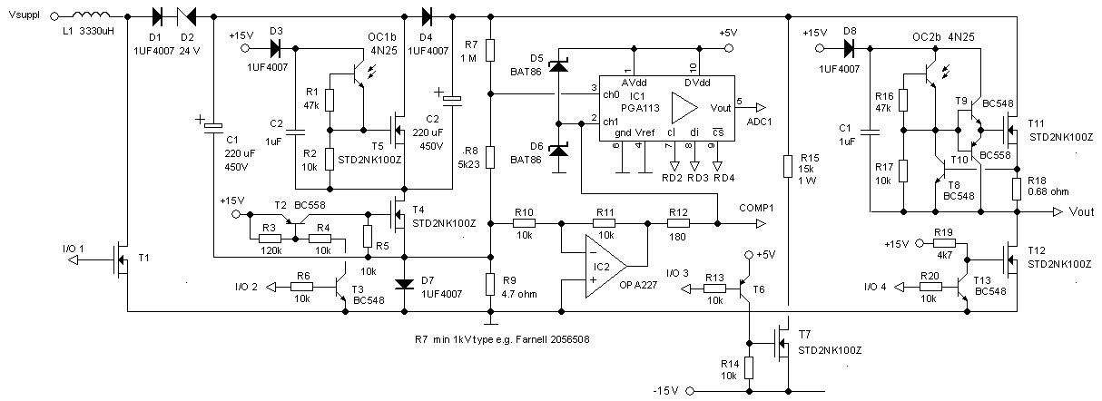 Figure 3.7 Improved high voltage 900 V / 1 Ampere supply circuit.