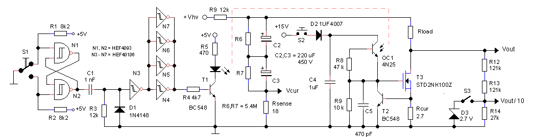 The high-voltage supplies have already been extensively described in the previous sections. The uTracer 5 will contain two identical circuits one for the anode and one for the screen.