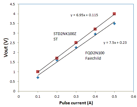 Figure 2.8 The FQD2N100 compared to the STD2NK100Z.