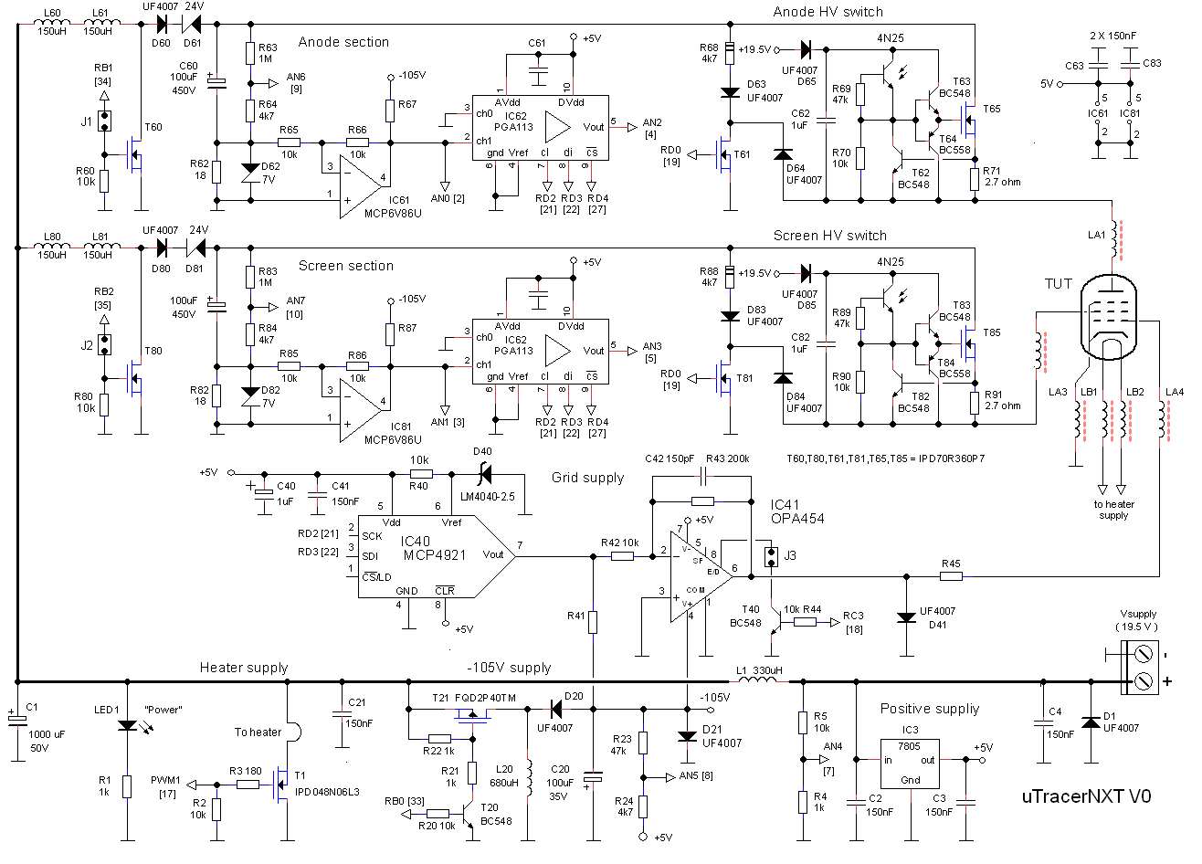 So, all this made me think and decided me not to go for a straightforward simple modification of the uTracer3 PCB, but instead to take a critical look at the whole circuit and come up with a more modern and future proof overhault: the uTracerNXT!