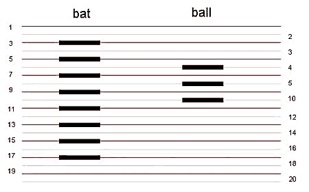 field consists of 216 lines. The line routines receive the bat y coordinates