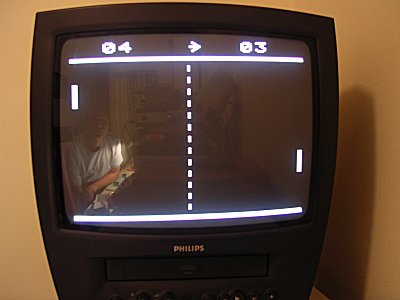 In some microprocessor pong games the screen is organized as a graphic display with rather large pixels [6]. The internal RAM memory in that case is used as a bit mapped video memory. The advantage is that the synchronous routines only have to read out the memory and display the contents on the screen. The asynchronous part of the program writes the ball and the bats in the memory.