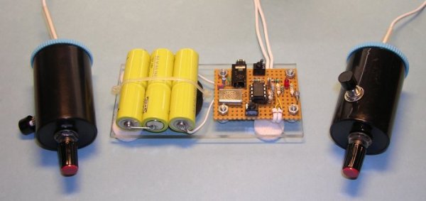 connectors. The circuit uses only 10 mA so that 3 AA cells can be