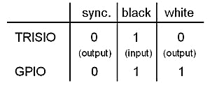 Table 1 summarizes how bit 0 in the output register GPIO and the output
